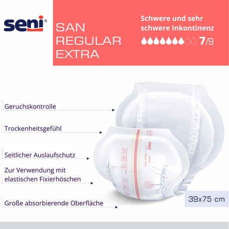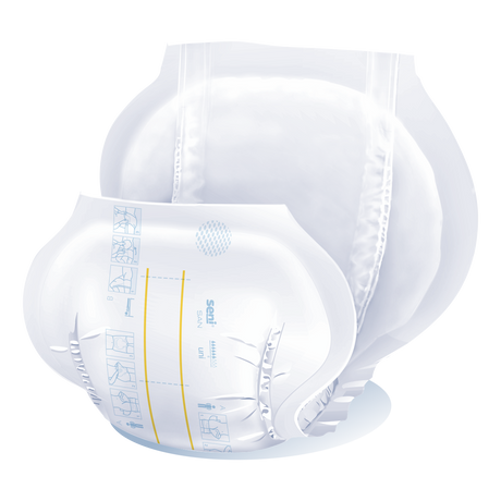 Die Vorlage wird in ein Fixierhöschen eingelegt, das wie normale Unterwäsche getragen wird. Der Saugkörper nimmt Flüssigkeit sicher auf und bindet sie im Inneren. Seitliche Auslaufbündchen verhindern ein Auslaufen.